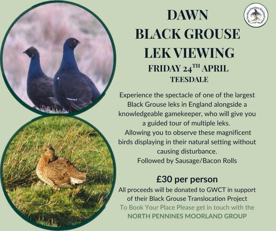 A £30 donation is associated with this event, with all proceeds directed to the Game & Wildlife Conservation Trust (GWCT) to support their Black Grouse translocation work, an important conservation initiative aimed at strengthening populations in suitable areas.