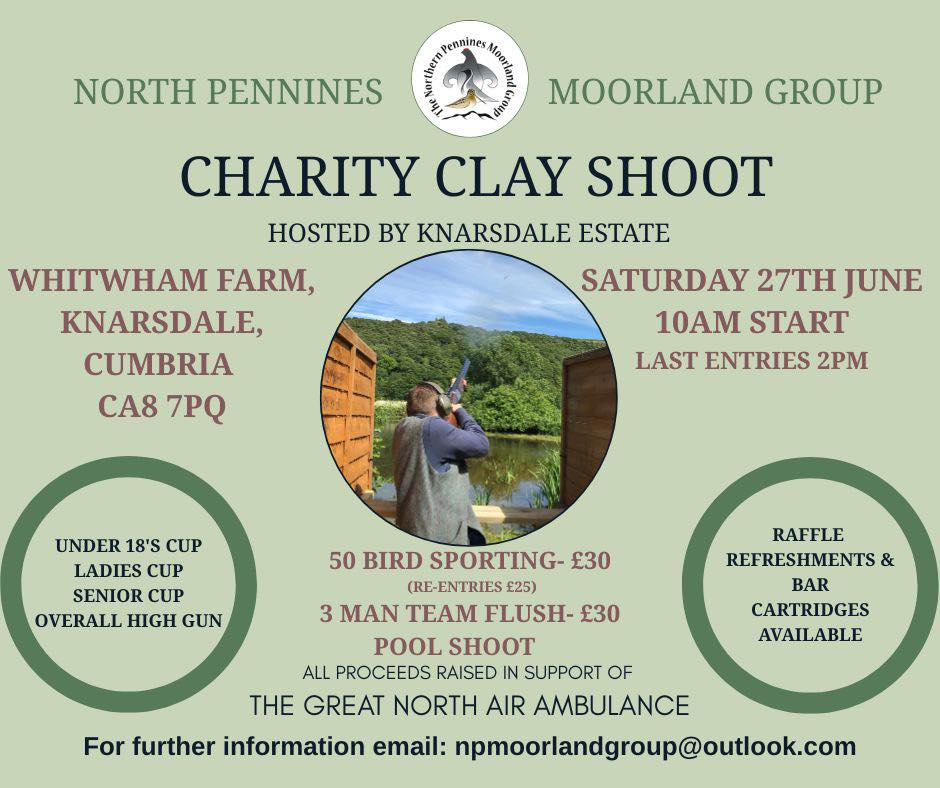 Our Charity Clay Shoot is taking place on Saturday 27th June! All proceeds raised will go to the Great North Air Ambulance Service